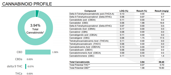 Incluye 500mg de CBD y 500mg de CBG por frasco. Un total de 1000mg es equivalente a 16.5mg de CBD y 16.5mg de CBG por cada mililitro (aproximadamente 20 gotas).
